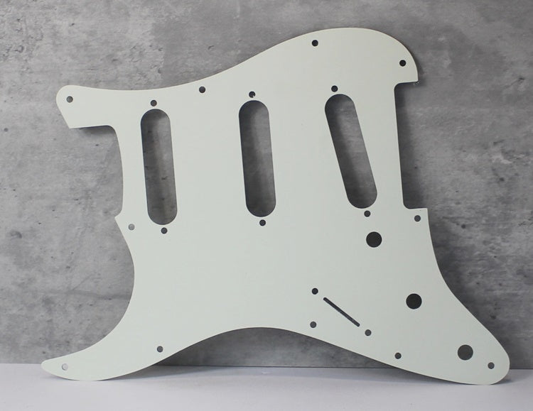 These pickguards are custom made with a thicker black ply and slightly wider bevel. They have a vintage look versus modern pickguards and will look right on aged, vintage or vintage inspired guitars