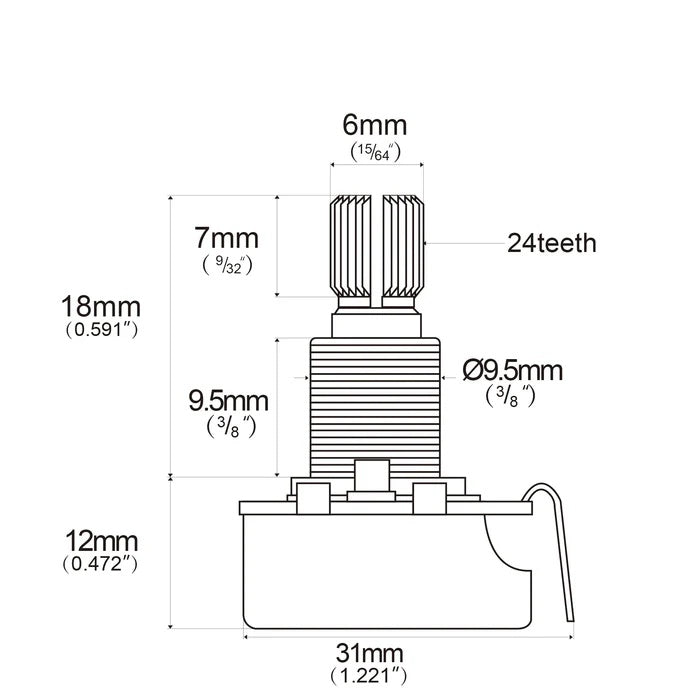CTS Vintage Style 450 Series 500K Split Shaft Linear Pot - B500K