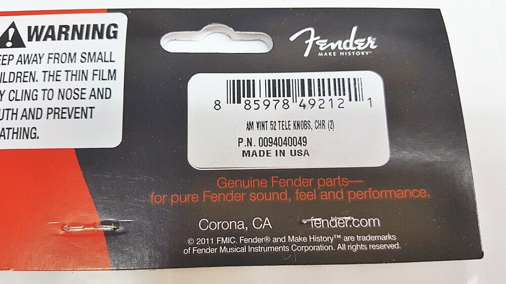 Original Fender 52 Chrome 009-4040-049 Telecaster Knobs Set (2)