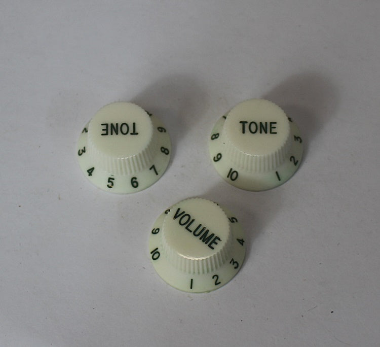 NOS Aged Knobs For USA Stratocaster - Aged White w/Green Font